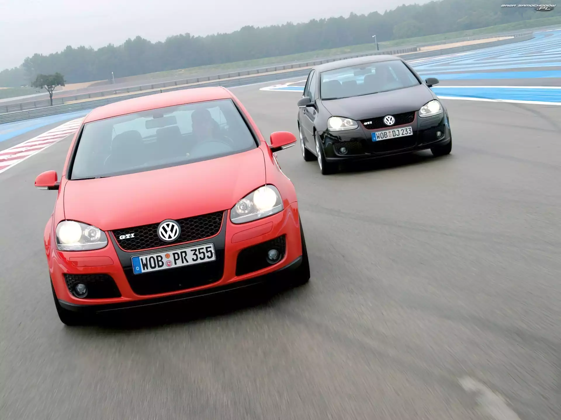 Dwa Golfy serii 5, czerwony i czarny- Zdjęcia samochodów