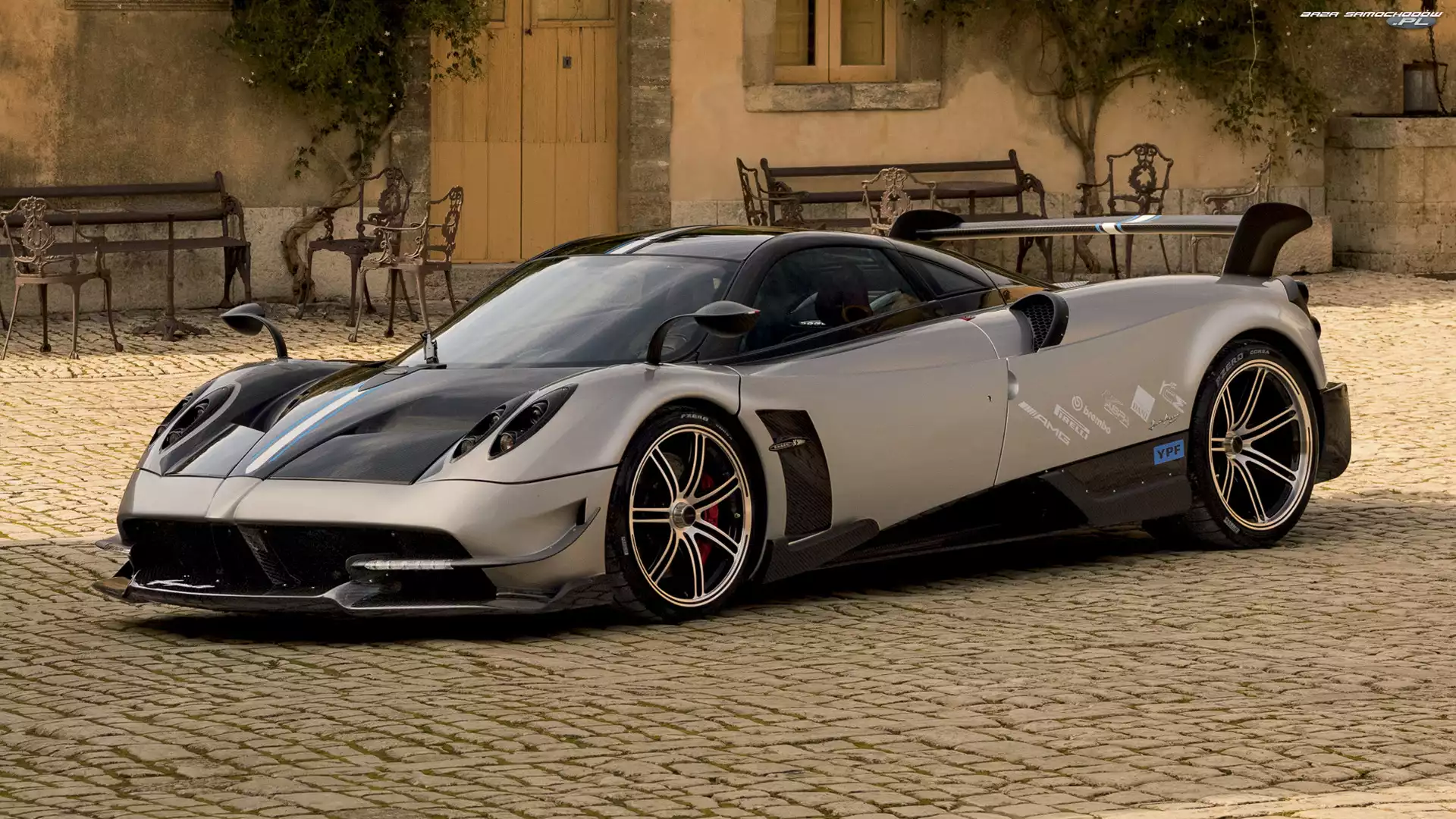 Pagani Huayra, Drzewa, Niebieski, Droga Spojler, Pagani Zonda R Brama, Czerwony, Pagani Huayra Budynek, Pagani, Parking Spojler