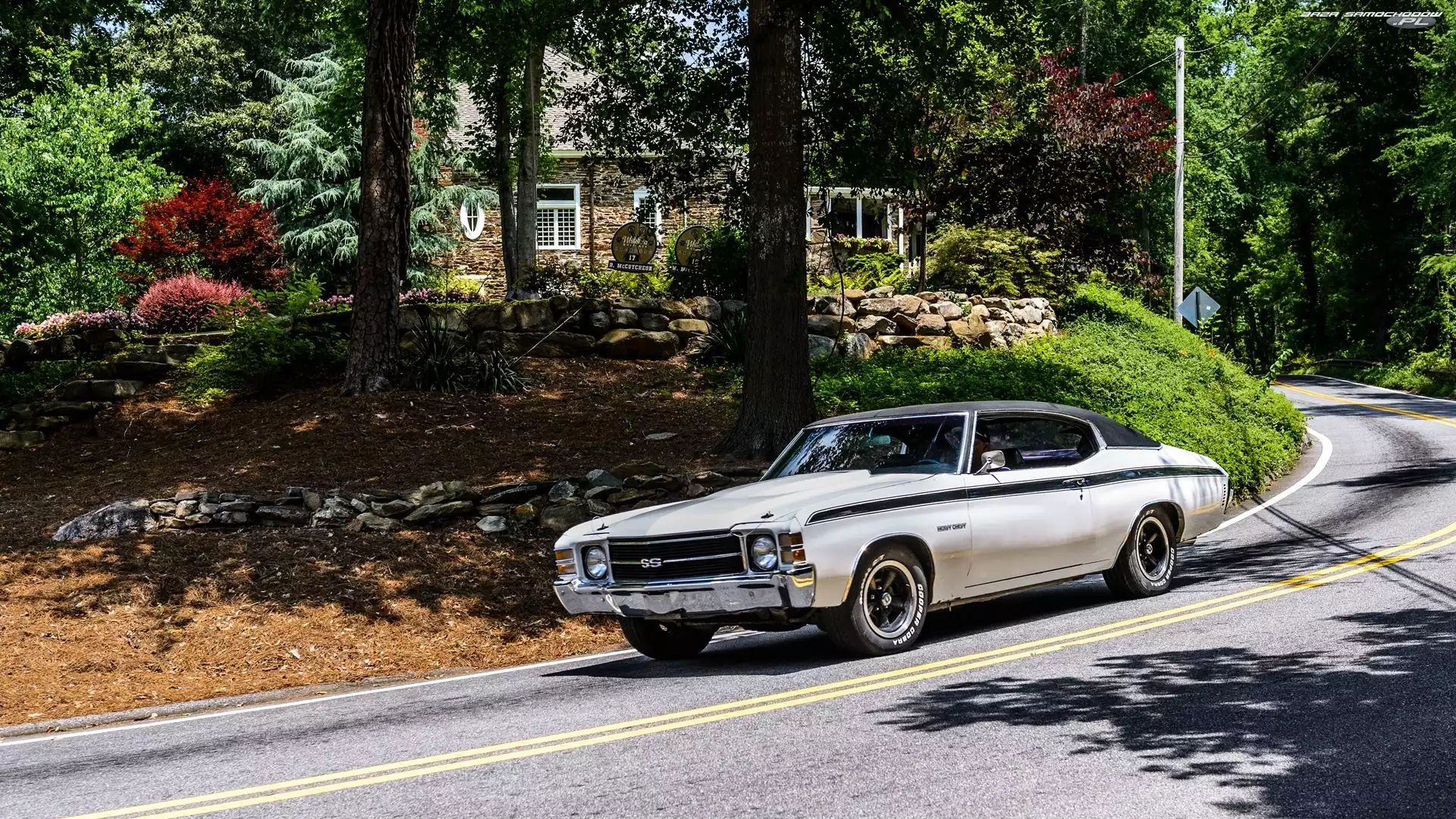 Samochód: Rośliny, Drzewa, Ogród, Droga, Chevrolet