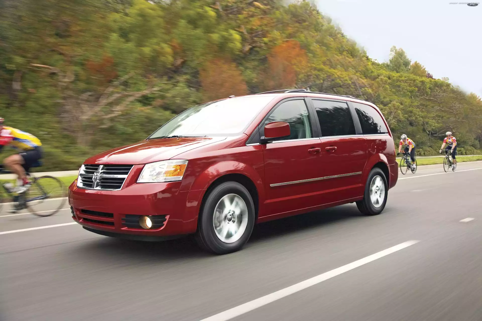 Rowerzyści, Dodge Caravan, Droga- Zdjęcia samochodów